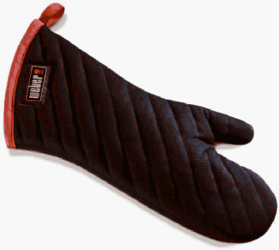 - Heavy-duty barbecue mitt emblazoned with Weber Logo- Black with red wrist border