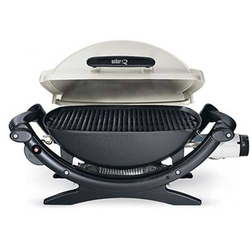 The super-portable model in the Q line, the all new Baby Q, is modest on the outside but packs a powerful grilling wallop underneath that cute exterior. Proof that good things do come in small packages, the Weber Baby Q gas grill has push-button ingition for easy, reliable lighting, an infinitely adjustable burner valve with a high-quality regulator, sturdy glass-reinforced nylon grill frame, cast aluminum lid and body, a large heat-resistant lid handle, a porcelain-enamled cast iron cooking grate, and operates on a standard 14.1 ounce propane cylinder (sold separately).