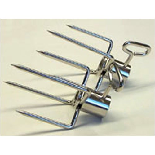 Two deluxe 4-Prong Heavy Duty Meat Forks for half inch diameter spit rotisserie counter balance. Fits spit rods with diameter greater than half an inch.